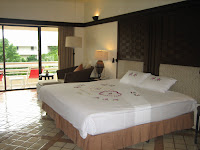 El guía nos ofrece excursiones a Phi Phi y a la bahía de Phang ga. 2200 baths cada una. Sabía que era un poco caro pero como queremos hacerlas con los del grupo, aceptamos. Nos dice que para Phi Phi no sabe cuando podemos ir ya que el tiempo está regular y la lancha da muchos saltos, que se están suspendiendo. Por lo pronto iremos mañana a la bahía. Llegamos al hotel después de 45 minutos con algunas curvas( la isla está llena). Es inmenso y un trenecito nos lleva a la recepción. Mi crítica en tripadvisor: