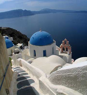 Sol, islas, playas y una configuración geológica especial le da esa belleza salvaje y única a Santorini. Thira , la capital , es quizás el pueblo más bello y singular del Egeo. Se encuentra construida y asomada sobre el extremo de un precipicio que mira sobre el hueco dejado por el volcán. Existen numerosos alojamientos pequeños, mediterráneos, con encanto con su terraza y vistas sobre la famosa nombrada Caldera.