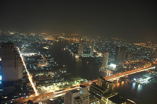 Una maravilla de sitio, alucinante y espectacular. Nos quedamos sin palabras al subir a las alturas y ver Bangkok iluminado. Primero nos tomamos una copa en Breeze, restaurante de comida fusión tailandesa en la planta 51. Tomamos dos Mai Thais por 894 baths ( 17 euros).