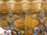 Este palacio fue la antigua residencia del Rey y ahora es uno de los monumentos más visitados y venerados de toda Tailandia. Nos quedamos maravillados por su majestuosidad y opulencia. Aquí está todo hecho para que el visitante se quede con la boca abierta. Y a fé que lo han conseguido, y con creces. Aquí contemplamos el buda esmeralda o Wat Pra Keow, la imagen de buda más venerada de Tailandia.