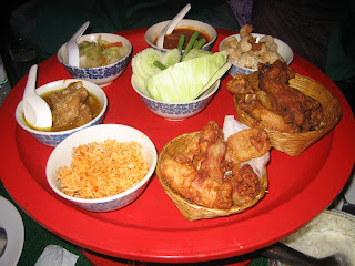 Y las 8 tenemos una cena Kantoke, la cual me pareció más turistada que otra cosa. Aquello estaba hasta los topes y la comida no fue muy variada.