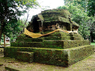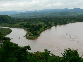 El verde paisaje es maravilloso y podemos contemplar el gran río Mekong. Las vistas desde el mirador son magníficas y te puedes pasar allí un buen rato admirando la grandiosidad del lugar. Nosotros ascendimos unas largas escaleras para ver los restos de lo que fue un templo, destruido por los Birmanos.