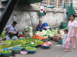 La ciudad es pequeñita y tiene un animado mercadillo en donde venden de todo. También es curioso ver a la gente cruzando la frontera con sus motos cargadas de productos. Nuestro guía nos dice que no compremos nada, que las imitaciones son muy malas. Se ve bastante pobreza por los alrededores y la gente cruza la frontera ya que en Birmania la cosa está peor. Un militar con su metralleta nos mira con desdén mientras no quita ojo al otro lado del río. Aburrido, se sienta cerca nuestra y se dedica a lanzar piedras con un tirachinas hacia Myanmar ( será lo único que puede lanzar, de momento).