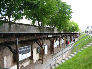 El muro está presente por todo Berlín y se puede ver por donde pasaba, ya que por el suelo hay unas baldosas, con el grosor que tenía, que lo indican.