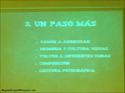 M.C, yo esperaba desvirtualizarte en Málaga y no ha sido posible. Otra vez será. La charla estuvo muy bien, algunas pinceladas sobre fotogafía de viajes pero sin profundizar mucho, no había tiempo. Me gustó que dijo que no hace falta tener una supercáamra para hacer buenas fotos!! Y textualmente nos dijo que "el photoshop no es lourdes". Muy cierto